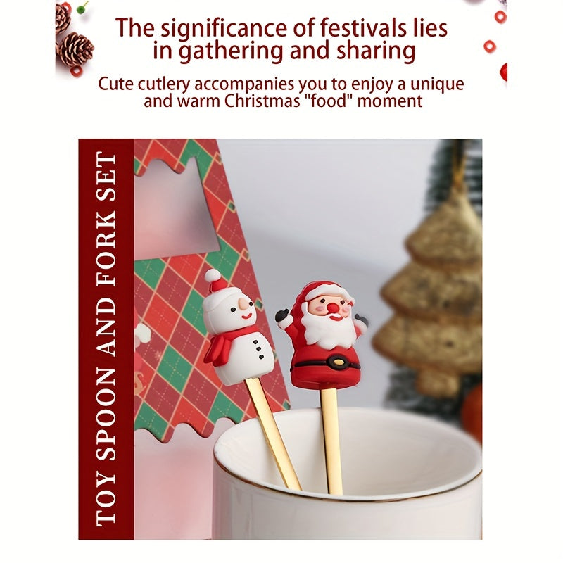4/6Pcs Christmas Coffee Spoons Forks Set, Coffee Spoons, Stainless Steel Spoon Fork
